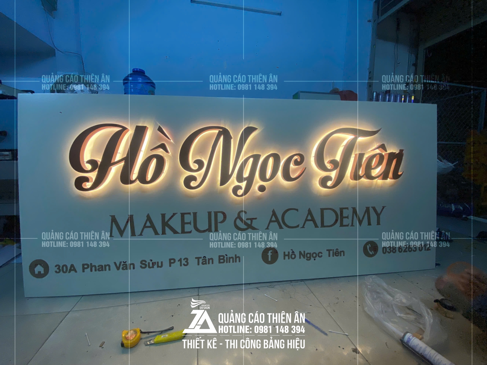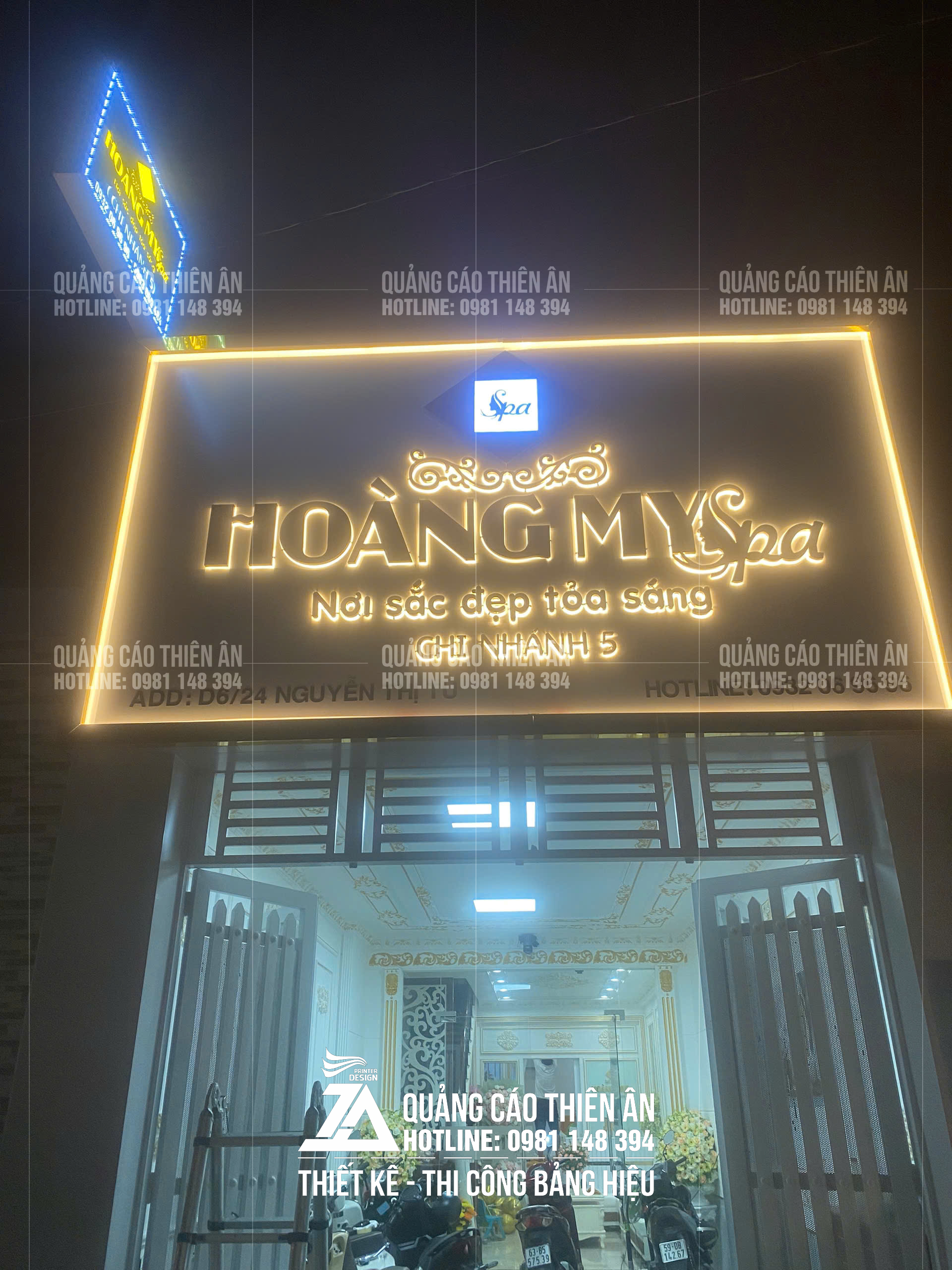 Với chất liệu, bạn có thể sử dụng nhôm hay mica để tạo nên sự bóng bẩy và lịch lãm cho biển hiệu. Nếu muốn tôn vinh thêm tính thẩm mỹ, có thể thêm những chi tiết bằng đèn LED hoặc ánh sáng neon.